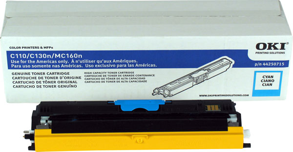 Okidata Cyan Toner Cartridge (44250715), High Yield, OEM (2 500 Yield)
