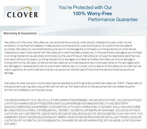 Not all remanufactured cartridges are made the same. There is a huge disparity in the quality and performance of aftermarket imaging supplies. At Clover, we take pride in a defect rate that is the best in the industry and rivals that of the OEMs. Our world-class engineering department designs our cartridges to meet or exceed OEM specifications for yield and print quality through the design and implementation of propriety product development practices, manufacturing standards, process automation, and performance testing protocols
