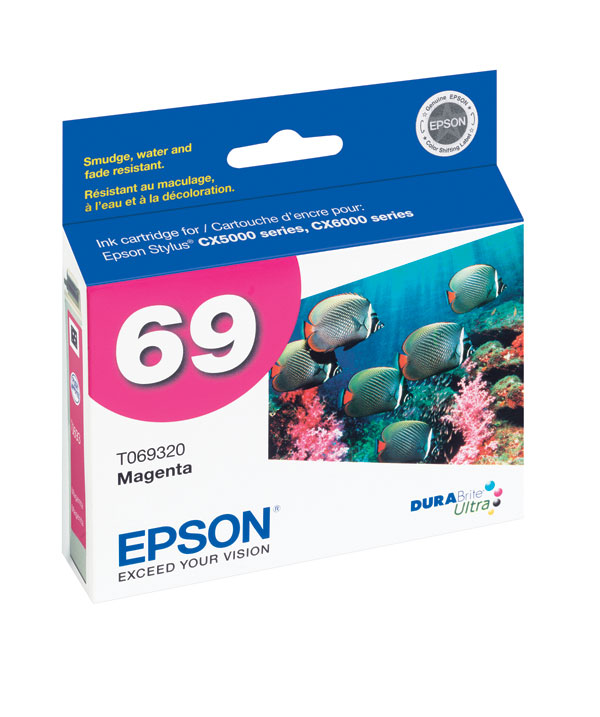 Epson Stylus(R) C120/CX5000/CX6000/CX7000F/CX7400/CX7450/CX8400/CX9400Fax/CX9475Fax/NX100/NX105/NX110/NX115/NX200/NX215/NX300/NX305/NX400/NX410/Nx415/NX510/NX515WorkForce(TM) 30/40/310/315/500/600/610/615/1100 DURABrite Ultra Magenta Ink Cartridge (Smudge Fade & Water Resistant) OEM