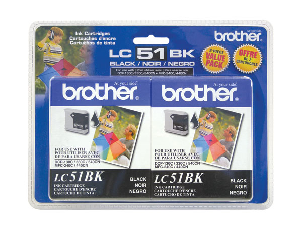 Brother DCP 130/330C/350C/FAX 1360/1860/1960C/2480C/25080C/MFC 230C/240C/440CN/465CN/665CW/685CW/845CW/885CW/3360C/5460CN/5860CN, Black Ink Twin Pack (500 x 2 Yield) (2 Pack of LC51BK) OEM