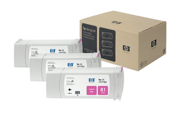 HP 81 Dye 3-Ink Multipack Magenta (3 Pack of C4932A), OEM