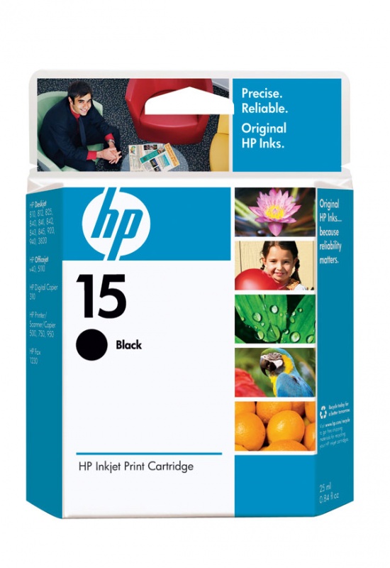 HP 15 Inkjet Print Cartridge Black, OEM (500 Yield)