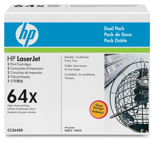 HP 64X Black toner cartridges deliver consistent yields and provide high-quality results