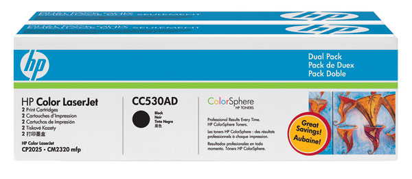 HP 304A Black Toner Cartridges (CC530AD), Twin Pack, OEM (3500 x 2 Yield) (2 Pack of CC530A)